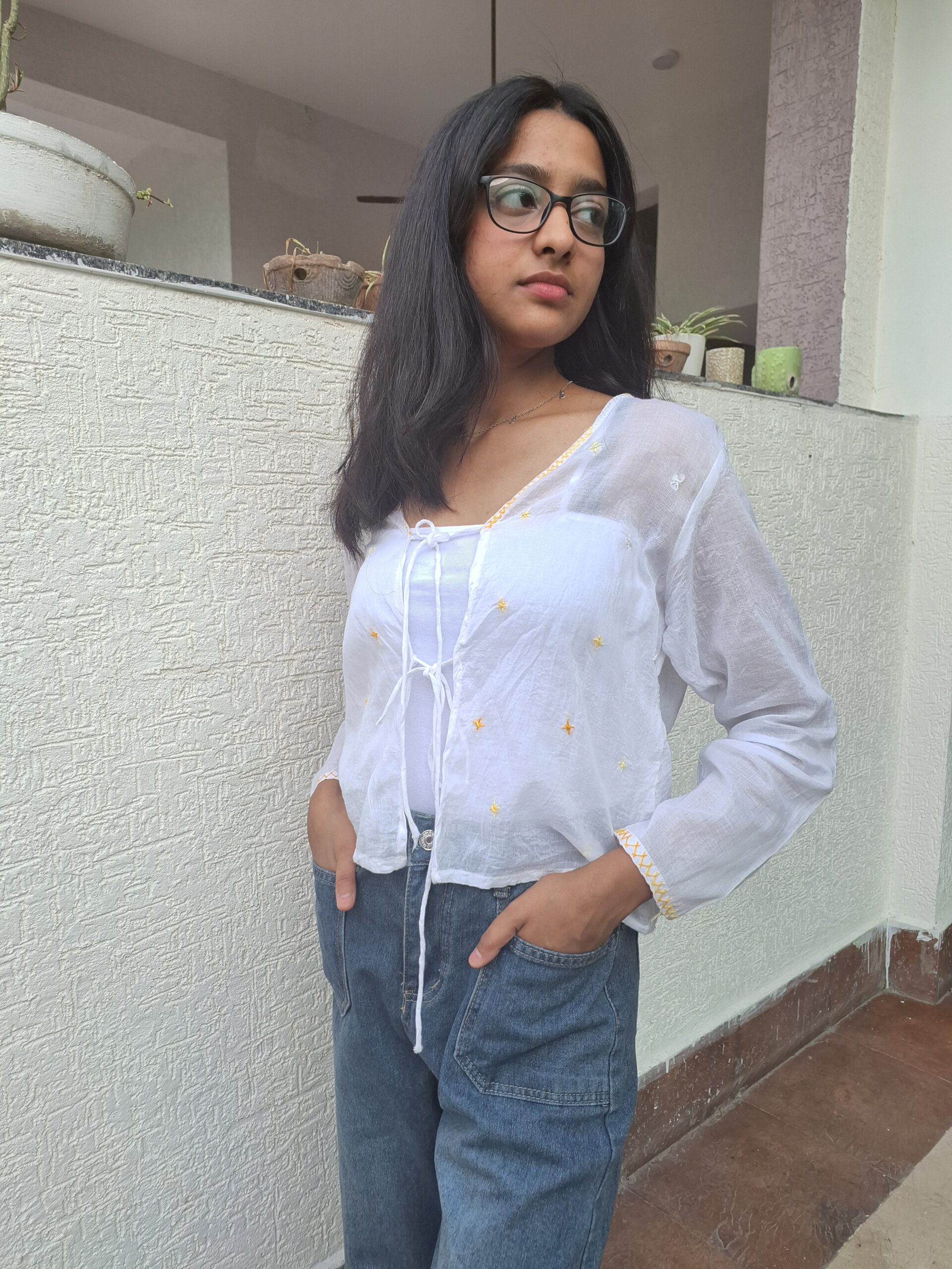 "The Lemon Thread Jacket is your breezy summer essential. Cut in soft white mulmul, it feels light as air and keeps you cool even on the hottest days. Playful lemon embroidery adds a fresh pop of colour, while the cropped silhouette brings in a hint of 90s vintage charm. Airy, breathable, and endlessly versatile — wear it over a dress, pair it with high-waisted jeans, or layer it with a matching crop top. A piece that’s as refreshing as a glass of nimbu pani. MADE BY PINKY"Additional information