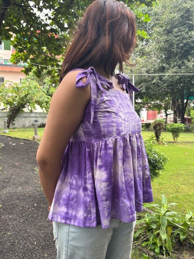 Purple khadi tie-top with shibori design — cute, flirty, and made for carefree days out.